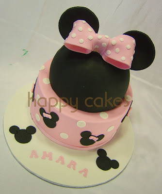 Good morning all! Here's a christening cake with a little difference! Since visiting Disneyland Amara (now just over 2) has been a mickey/minnie mouse fan. So when mum ordered this cake she wanted to stick within this theme. I know a true Mickey/Minnie cake would be red and black but we adapted this a little. Hope you enjoy your cake Amara ;-)